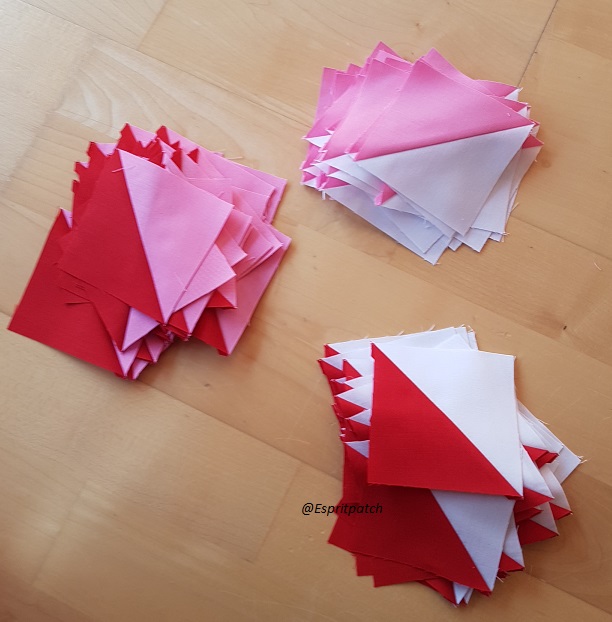 Next step for me, which was my mission for Saturday was to make the Poinsettia blocks, by far the more complex and time consuming blocks in the pattern. 10 are required in total